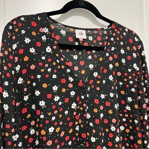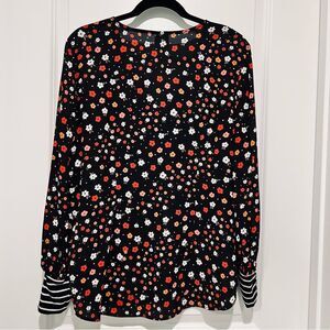 Cabi Women's Cheerful Blouse Sz. Large Floral Print and Striped Cuffs Style 3957