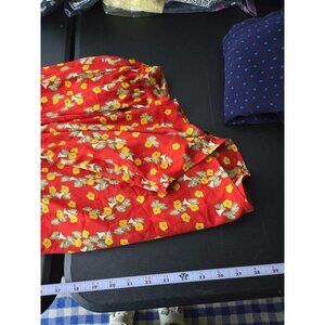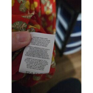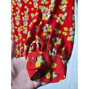 red yellow green multicolor colorful bright vibrant flower garden floral boho bohemian maximalist long sleeve button vneck v-neck sheer see through lightweight mature modern career business office work date night going out feminine collar print pattern spring summer fall winter Cabi blouse, floral blouse, red blouse, women's shirt, casual top, long sleeve, polyester top, collared blouse, size S, Cabi clothing, floral pattern, red floral, lightweight blouse