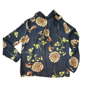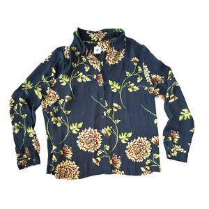 Cabi Womens Floral Button-Up Shirt Navy Yellow Red Size Medium