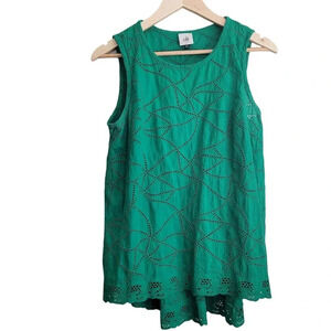Cabi Women's Gemma Eylet Tank Top Blouse Size S Kelly Green Sleeveless