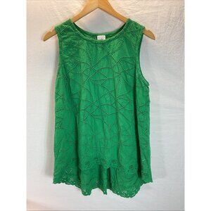 Cabi Women's Gemma Sleeveless Eyelet tunic Tank Top Kelly Green SIZE M