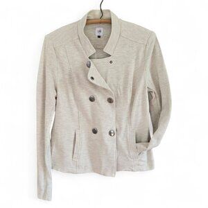 Cabi Womens Heather Cream Double Breasted Knit Military Jacket Size Medium