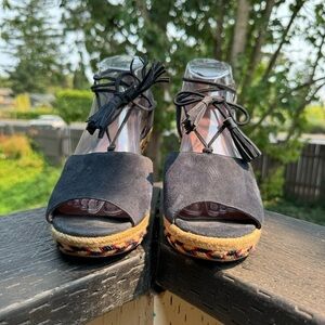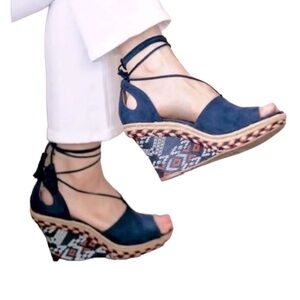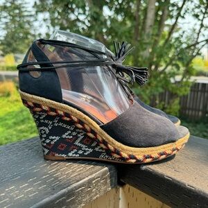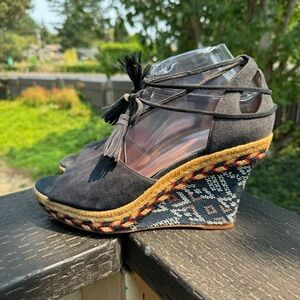 Cabi Women’s Isla Wrap Around Wedge Espadrille Sandals Aztec Pattern Size 9
