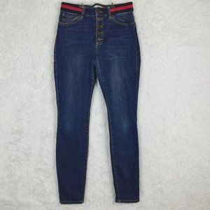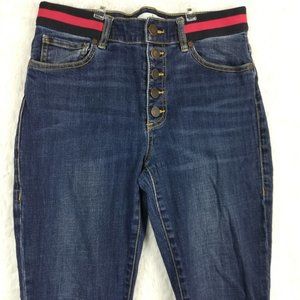 Cabi Womens Jeans Skinny Button Fly Blue Denim Elastic Waist Stretch Dark Wash 6