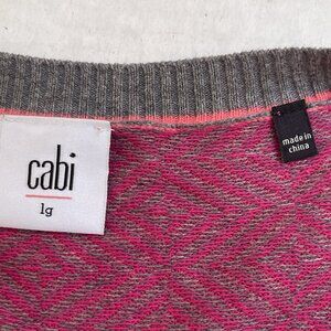 Cabi Womens Large PinkGray Geometric Design Cardigan Knit Fall Boho Cottage