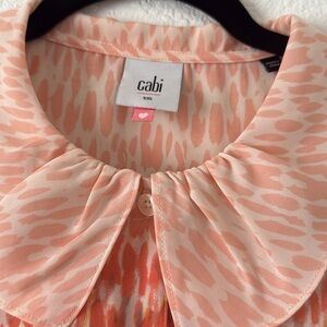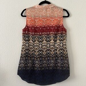 Elevate your style with this Cabi sleeveless top featuring a vibrant blend of orange, red, and blue hues. Perfect for any occasion.