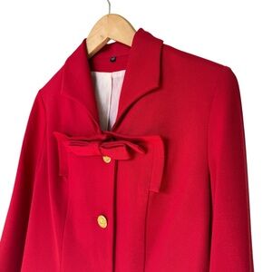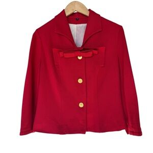 Cabi Women's Red Blazer Jacket Sz 6 Bow Accent Gold Button Casual Office Attire