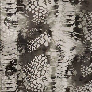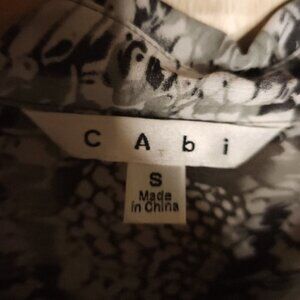 Cabi women’s sheer black grey animal print blouse small. Gently used condition. Measurements are: 24 ½" sleeve, 31” from shoulder to hem, and 19 ½" from armpit to armpit.