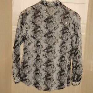 Cabi Womens Sheer Black Grey Animal Print Blouse Small