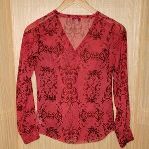 Cabi Women's Sheer Floral Maroon Blouse. Small