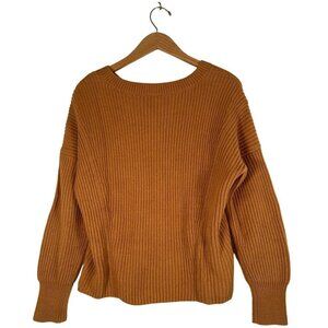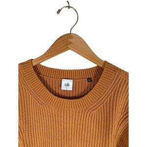 Cabi Womens Size S (generous S - see measurements) Gold Shaker Rib Sweater Knit Top Cropped Crewneck Step HemlineLong Sleeve Pullover.