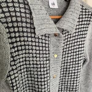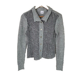 Cabi Women's Square Stitch Cardigan Collar Sweater Snap Gray Size Small #3006