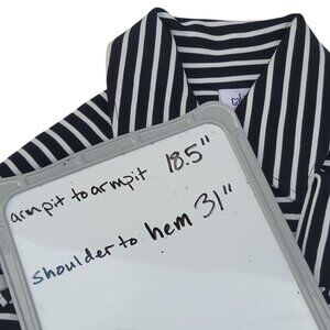 This Cabi coat features a stylish striped design with a double-breasted front. Ideal for layering, it offers warmth and elegance.