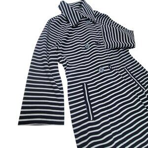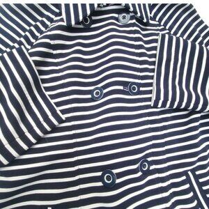 Cabi Womens Striped Double-Breasted Coat Blue White Nauticle Preppy