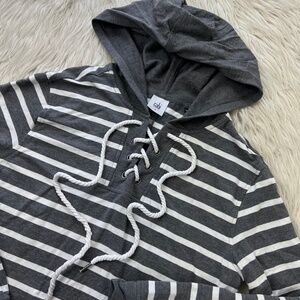Cabi Women's Striped Lace Up Neckline Windward Hoodie