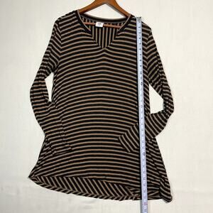 This Cabi striped long-sleeve top is a versatile and comfortable piece for any casual wardrobe. The soft, stretchy material provides a relaxed fit, making it perfect for everyday wear or as a stylish layering piece. The classic striped pattern and flattering V-neck design make it a timeless addition to your collection.