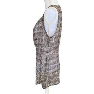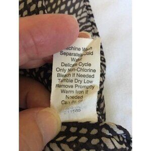 This CAbi women's medium-sized top features a chic black and cream color scheme. It's sleeveless, sheer, and comes with an elegant keyhole design with a button. Perfect for casual or formal wear.