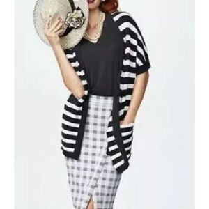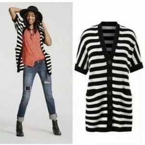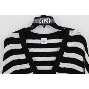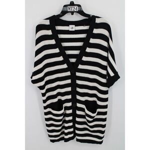 Cabi Womens Whistle Black & White Stripe Knit Cardigan Sweater Tunic 5289 Small