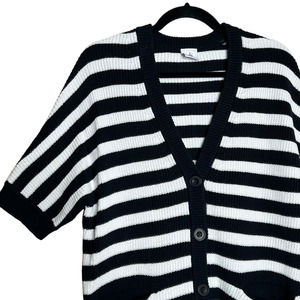 Cabi Womens Whistle Cardigan Black White Striped Size Small Oversize Fit