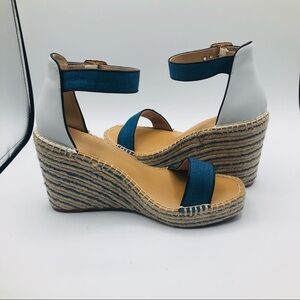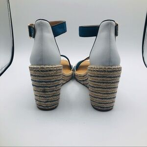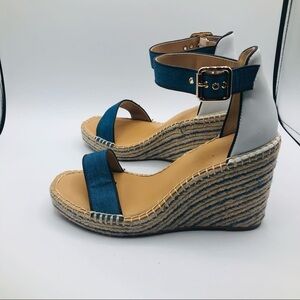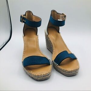 Cabi Women’s blue suede espadrille wedge sandals with ankle strap size 8 medium