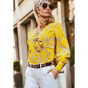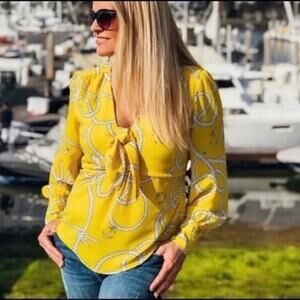 Cabi Womens size Small Reef Knot Long Sleeve Blouse Top 5707 Nautical Anchor