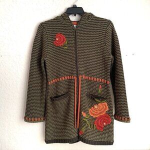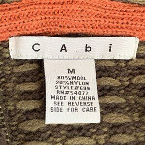 Cabi Wool Blend Coatagan Womens Medium Green Embroidered Pockets Hood Zip Close