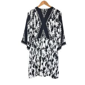 Cabi X-Factor Faux Wrap Black White Pattern 3/4 Sleeve Mini Dress Pockets