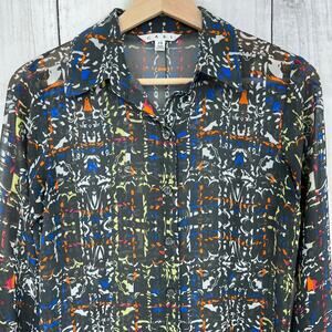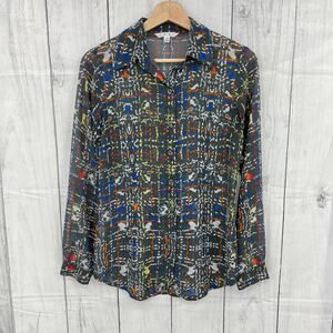 Cabi XS Gray Sheer Festival Top Blouse Button Up Style #129