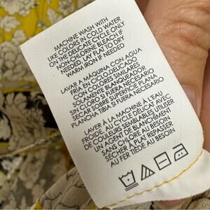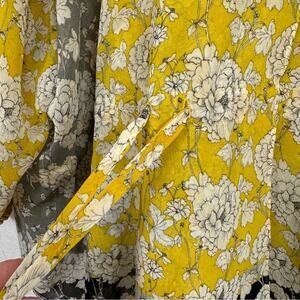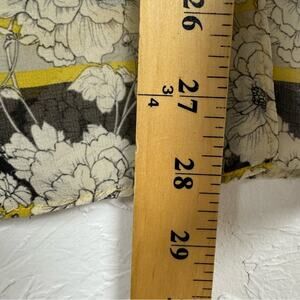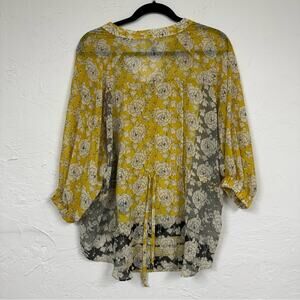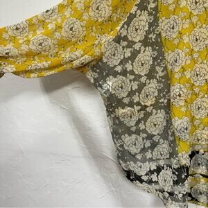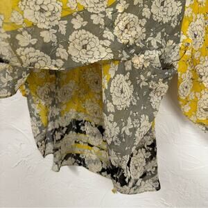 Cabi Yellow & Grey Floral Boho 3/4 Sleeve Blouse Womens S Sheer Puff Sleeve Top
