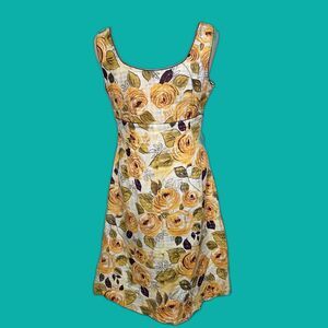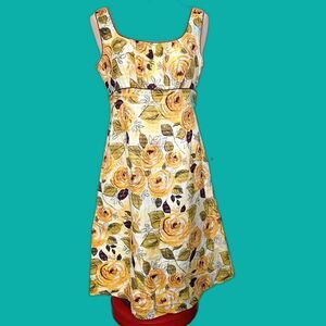 Cabi Yellow Rose Print A Line Sleeveless Dress Sz 4 Cotton Milkmaid Cottagecore
