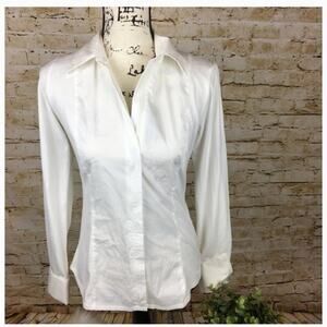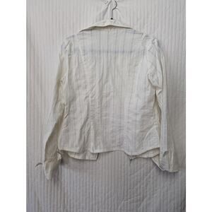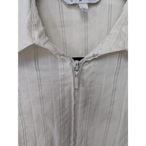 Cream Color or off white French Cuffs have single button Zip Front Some stretch to fabrice