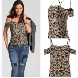 Cabi blouse tiered off shoulder shirt leopard camo women’s size small