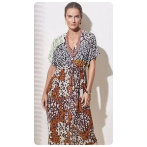 Excellent condition escape mixed print dress however missing slip underneath. Perfect to be worn as a beach coverup or can wear neutral slip underneath! Drawstring cinches at waist.