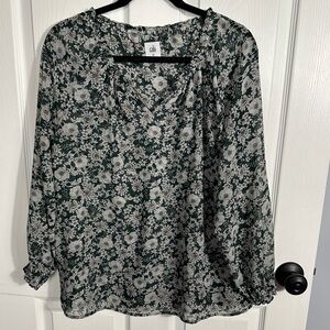 Cabi green floral peasant blouse, flowy, fully lined, size XS, sheer, fall