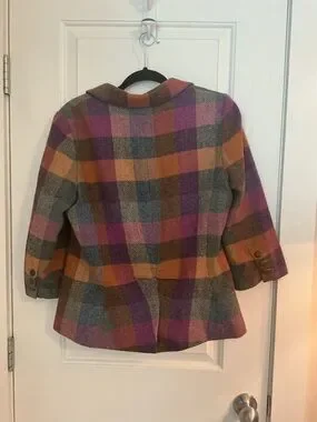 1. Size 10 Happy blazer in jewel tone plaid with 3/4 sleeve and single button closure