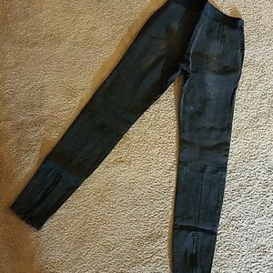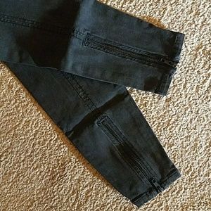 Stonewashed black. VGUC. Zipper detail on back and stitch detail at front knees. Stretch denim material. Elastic waistband.