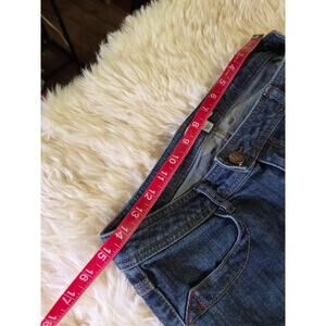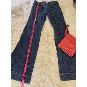 Step back into the early 2000s with these stylish Cabi jeans! These jeans feature a flattering flare cut and are a dark wash denim, perfect for pairing with your favorite tops. The pocket detailing adds a unique touch to this Y2K-inspired piece.