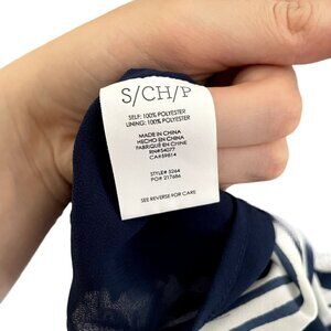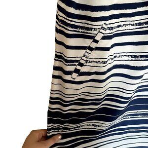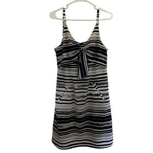 Cabi navy and white striped summer v-neck bow sundress spaghetti strap pockets
