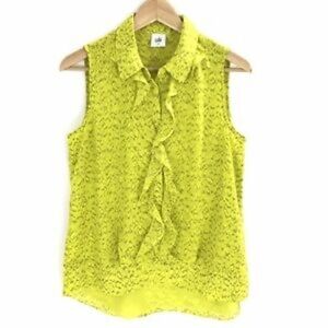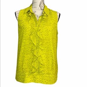 Cabi ruffle front chartreuse yellow green career wear tank small reign blouse