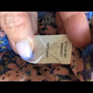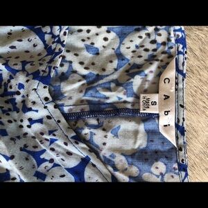 Cabi short sleeve blue and salmon floral top drawstring tie waist v-neck size S