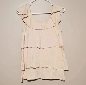 Cabi style #321 women's size small sleeveless ruffle front top tan casual H231