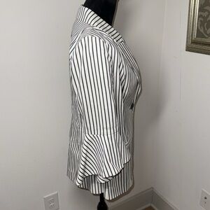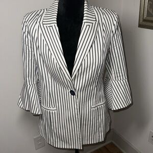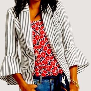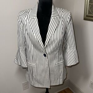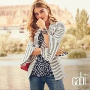 Cabi style # 5295 stripe cotton blazer bell sleeve single button ivory blue Sz 4
