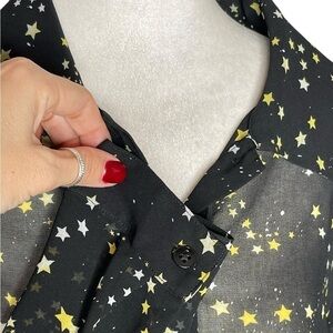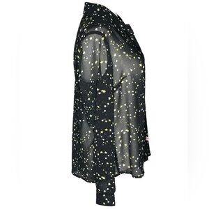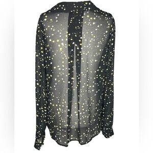 Cabi whimsical Sheer Button Down Blouse Black w Yellow & White Stars Size S