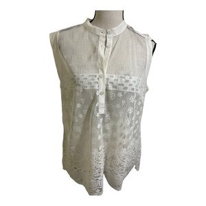 Cabi womens lace top. White .sleeveless. Size Medium. Button down