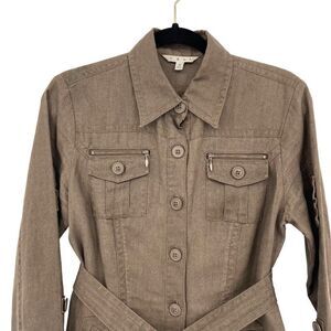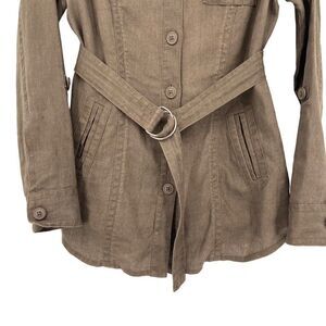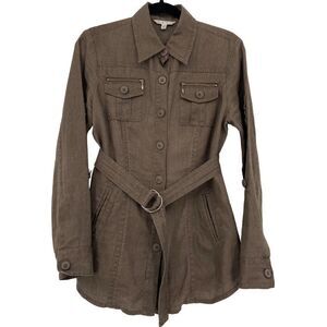Cabi 100% Linen Belted Utility Cargo Jacket Sahara Brown Small