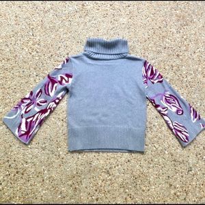 Like new Cabi Eden 3704 pullover. Silver rose color, easy fitting shape, hits at the high hip. Chunky knit turtleneck, bracelet length bell sleeves with floral intarsia pattern. Wide rib hem detail finish. Sweater knit, the intarsia pattern is knitted right into the sleeves, rather than printed on top.