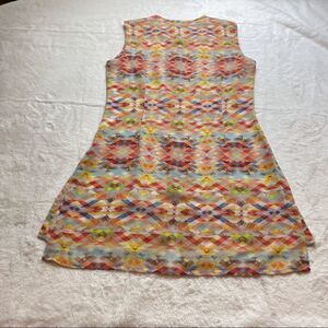 Cabi Avery Tunic Multi-color Size XS. Excellent used condition. Aztec print, semi sheer. Sleeveless with split sides. Measures chest 34”, length 30.5”.