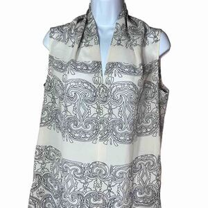 Cabi Gray & White Scrollwork Sleeveless Top Size Small