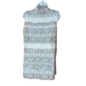 Cabi Gray & White Scrollwork Sleeveless Top Size Small. Good condition! Sheer.