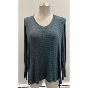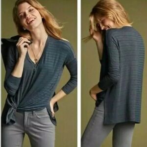 Cabi Hybrid Stripe Knit Tunic Tee Azure Charcoal Size XS